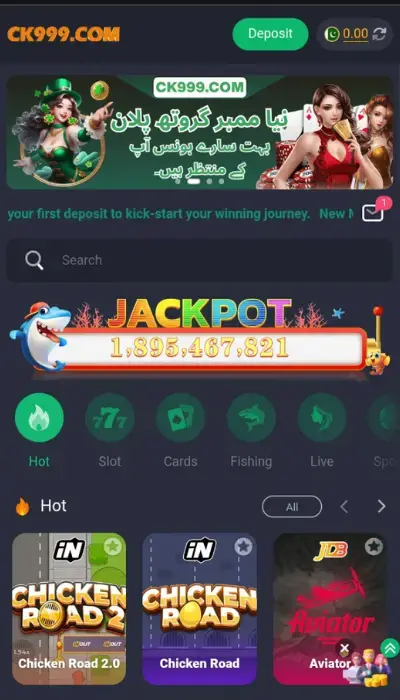 CK999 Game is a complete online gaming platform for Pakistani players. It combines classic casino titles, exciting slots, card battles, fishing games, lotteries, and sports betting into one mobile application.